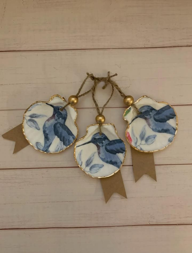 Blue Dreams Hummingbird Shell Hanging Ornament