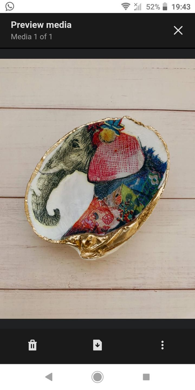 Handmade Elephant design Shell Trinket dish. The photos don't do the item justice, it's stunning. The elephant symbolizes spiritual awareness, and awareness of the earth and how she affects land. The elephant holds the symbolism of luck and fortitude, her call ushers in positive energy and breaks negative energy.