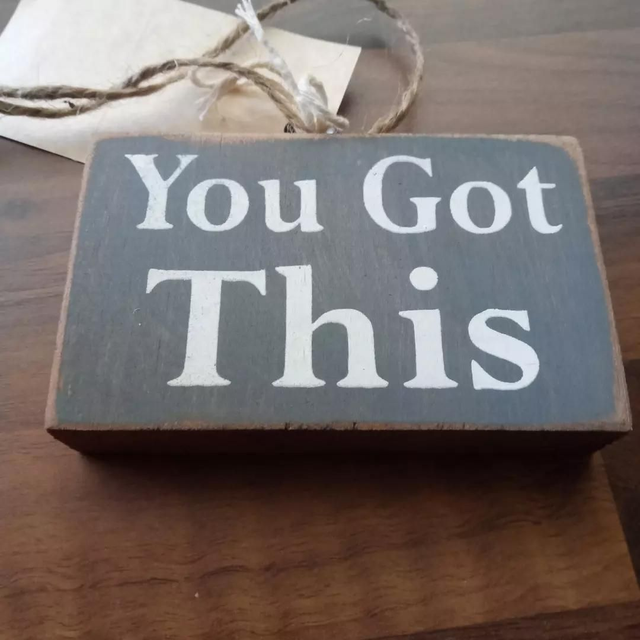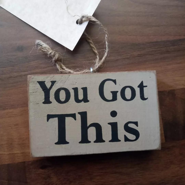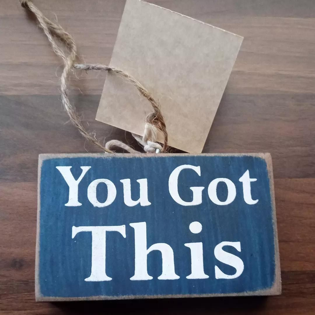 You Got This" Wooden hanger/sign. Approximately 2.5 inches x 4 inches x .5 inch. Good quality wooden ornament is suitable for use as home decor, wine bottle charm or gift package decor.